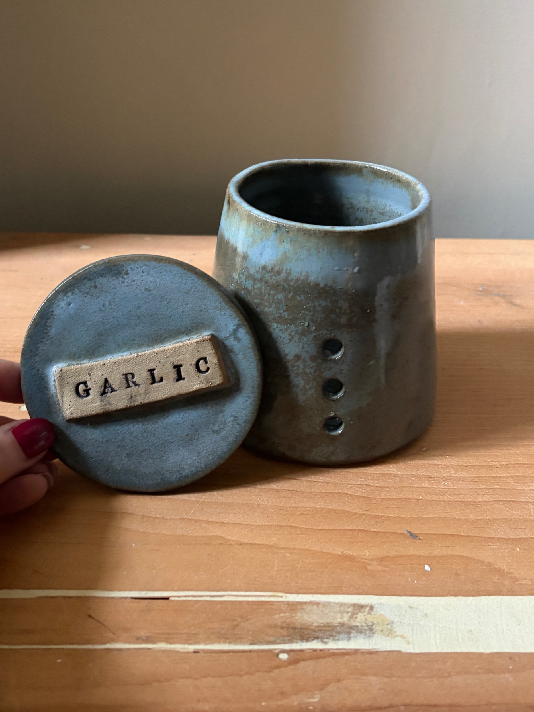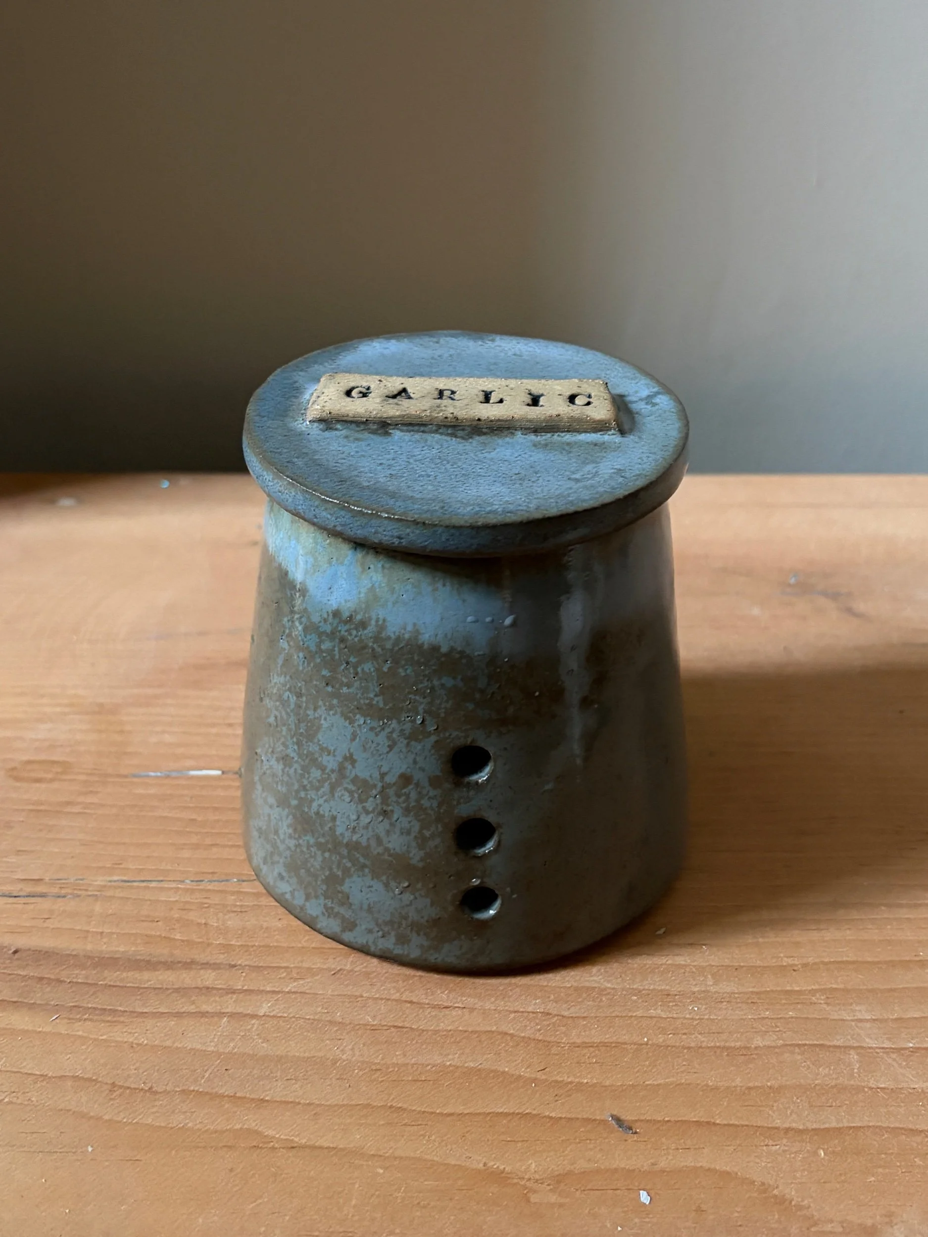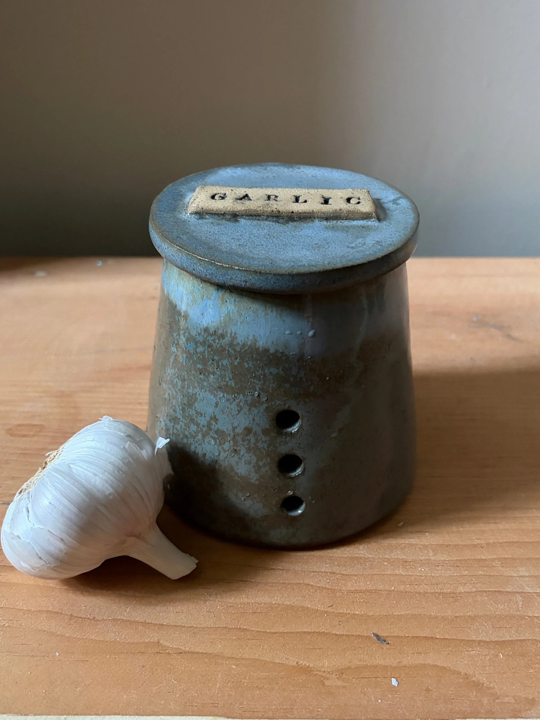 Keep your garlic fresh in style with this handcrafted ceramic garlic keeper. Finished in a a delightful blue glaze, it brings a touch of natural elegance to your kitchen. Ventilation holes provide optimal airflow, helping to preserve garlic’s flavor and longevity. Functional yet beautifully designed, this keeper is a must-have for any home chef.